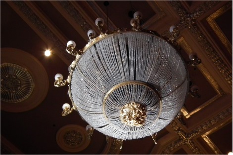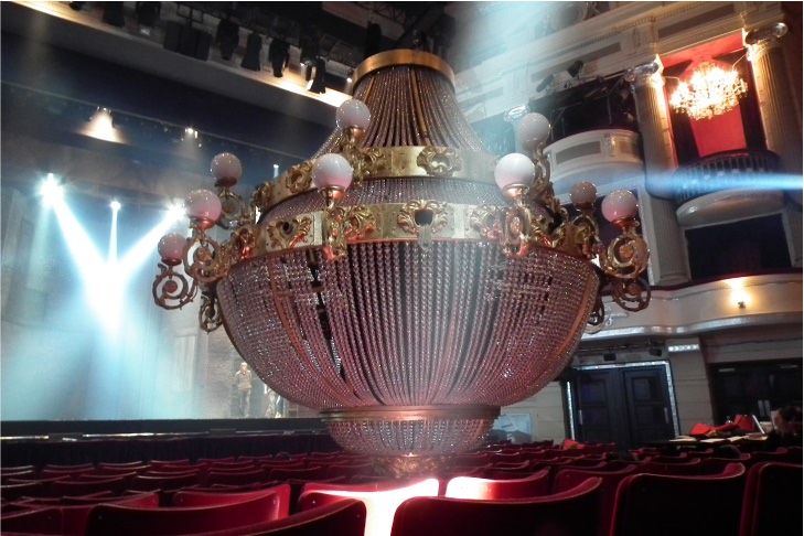 tonne of chandelier hanging over the centre stalls – the two wires