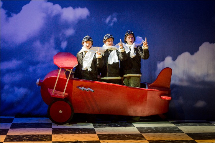 Aces high: the three boys, Henry Balding, Finlay A'Court and Ben Miller make a flying visit The Magic Flute Nevill Holt, Market