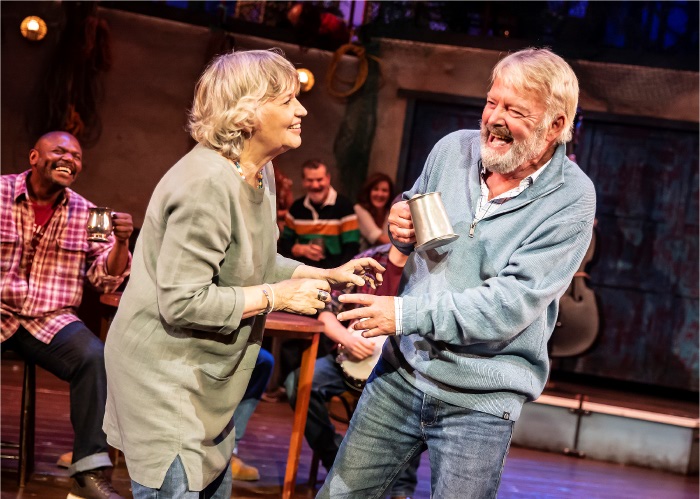 Parisa Shahmir as Alwyn with the company Then there is Jago’s wife Maggie, played by Susan Penhaligon, who has a more pragmatic view on life, after all, as she says of life: “What you’ll regret is the trouble you didn’t get into!” All helping to sow the seeds of a budding romance. And there is fun, just for the sake of it, as when the fishermen head to London, Padstow being the edge of their world so far, but an audition calls so they end up in the capital in a gay bar, when . . . well you just have to see it, after all they are people and they are from a village. Good as the shanties and traditional songs are, and they are good, the real highlights came not from the stars, the fishermen, but from their wives and daughters. Parisa Shahmir as Jim’s daughter Alwyn has a quite beautiful voice, clear as a bell, with a fabulous rendition of Village by the Sea even Joan Baez would be proud of. This is a new song from musical director James Findlay, who also appears as Henry in the on stage band. She also sings a wonderful sorrowful ballad of lost love and the haunting The Tidal Pool she wrote herself. Hazel Monaghan, as Sally, her life falling apart, appears with a mournful Celtic ballad, full of sorrow and emotion that could have come straight from a Clannad concert. You could really feel her pain in a wonderful performance. Again her voice was crystal clear and you could hear every word. The music is the lifeblood the production and tells of a life perhaps lost in our modern media savvy world, The tradition of sea shanties is strong in the fishing villages of not only Cornwall but other areas on the margins with the Fisherman’s Friends perhaps the best known exponents thanks to TV and film exposure. But many a village has its singers, I was in Cadgwith by the Lizard this summer, population around 1,000, with its village singers appearing once a week just up from the gig club, another Cornish tradition. The musical has added elements to the story, for dramatic effect, but the original had its own kismet moment. BBC Radio’s disc jockey Johnny Walker was on holiday in Cornwall in 2009 and came across a couple of the Friend’s home produced CD’s sold for charity, raising funds, as with their weekly concerts on the beach, for the RNLI. Walker listened and his manager Ian Brown was dispatched to see them and negotiated a £1 million record deal on their behalf. They had three self produced albums before the deal and so far five after, and have appeared at festivals, including Glastonbury several times. Not all the group were fishermen but had links with the sea, some were coast guard, some RNLI, but enough made a living from the sea to ensure tours were short and in the winter months away from the main fishing season. The musical is based on the 2019 film and is directed by James Grieve, with a clever set from Lucy Osborne, with a gallery to add interest and a roll on and off pub bar from one side, and fishing boat from the other with Matt Cole managing choreography which gave life to the production, even in wellies. Dan Samson’s sound design is well balanced, although voices were a little indistinct at times, while and the eight piece band with their whole range of folk instruments brought an authenticity to many numbers in what is an entertaining evening of fun and music. To 17-09-22 Roger Clarke 13-02-22 *The performance opened with an impeccably observed one minute’s silence to honour the memory of Queen Elizabeth II ended with a round of applause. |