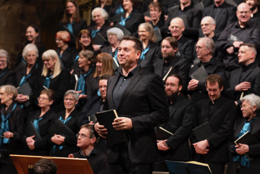 Conductor Adrian Lucas, choir and orchestra applaud Paul Spicer who was too unwell to conduct. Pictures: Phil Barnes St. Matthew Passion Lichfield Cathedral ***** The Birmingham Bach Choir always hits the heights. Bach's Passion According to St. Matthew, or its five-year predecessor the St. John Passion, is sung by large choruses across the kingdom in the run-up to Easter. I wonder if many will have matched that given in Lichfield Cathedral by Paul Spicer's justly famed and acclaimed vocal ensemble. This performance was glorious for countless reasons. The choir as usual gave its all - one would expect nothing less. But that is too blanket a description. Enunciation, impeccable pitching, intonation, meticulous (and at times sensuous) phrasing, confident pacing, empathy with the biblical text in the original German, insight in the chorales, which here felt deeply relevant to the juxtaposed passage of text, not mere additions as is so often the case. Here was a 70-strong chorus, with the exquisite, highly polished voices of Lichfield Cathedral Choir and the boys of the Tewkesbury Abbey Schola Cantorum on hand to lend additional, even adorable ripieno colour, intensively and perceptively rehearsed, with magical results. Not that the story is magical (Bach, or his librettist, omits, perhaps surprisingly, the optimism of Christ's mysterious disappearance and Resurrection itself). It is, as we all know, profoundly tragic: benign at the outset, it portrays growing doubt, betrayal, humiliation, courage, agony, and ultimately death. So, the choir has to capture these moods, embrace them, diversify, not leave them as mere relatively meaningless adornment. It did all of this, and more. Pacing, phrasing: so much of this is owed to the wisdom of a conductor. Paul Spicer had alerted Adrian Lucas - conductor of one of Birmingham's other marvellous choruses, the City of Birmingham Choir - to be ready to take over if he should be indisposed. And that is what happened. Lucas has always shown terrific talent and sensitivity in his conducting: at Portsmouth Cathedral, where I first heard him; and at Worcester, where he honed the Worcester Festival Choral Society and revealed exciting programming, leadership and artistry at the world-famous Three Choirs Festival. What one admired about Lucas's oversight of this unforgettable performance was - everything. The whole interpretation. Right from the start, he showed magnificent command of Bach's stupefyingly brilliant orchestral score. No section of the woodwind, or indeed the strings, got overlooked.