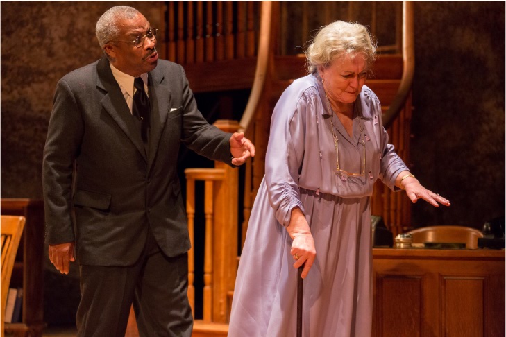 hinders. The cast's entrances, visually at least, are uninteresting, partly due to any salient design features in John Lee Beatty's plain set, but also to some lack of directorial flair. A single wide stairway, rear stage right, adds nothing By the end, the characters have aged a quarter of a century; their movement alters accordingly (Miss Daisy's rather well). But they are still plodding around much as they did at the outset. If the designer intended us to imagine the mansion's scale and dimensions, he was right: that's what we have to do. The action hots up at Hoke's job interview with