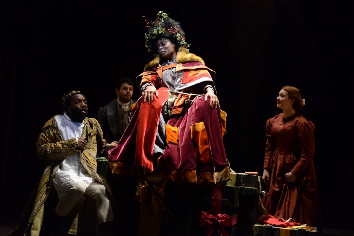 visited by the ghost of his seven year’s dead partner Jacob Marley (Marc Akinfolarin) and the ghosts of Christmasses past (Guy Lewis), present