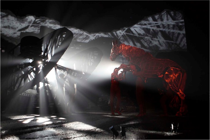 Changing face of war: a frightened Joey, from the lost age of horse soldiers, comes face to face with the new cavalry, tanks. Pictures Ellie Kurttze War Horse Birmingham Hippodrome ***** EVERY so often the curtain rises on a