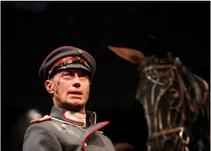 The puppets, from the Handspring Puppetry Company, with a rotating cast of 12 puppeteers operating Joey and Topthorn, are the heartbeat of the story of Albert, an illiterate Devon farm boy and his love for his horse Joey, set again st the horrors of the First World War. The switch of puppets, in literally a flash, from the young Joey as a foal to a full grown hunter is just breathtaking in its execution. Joey and Topthorn, the officer's thoroughbred are