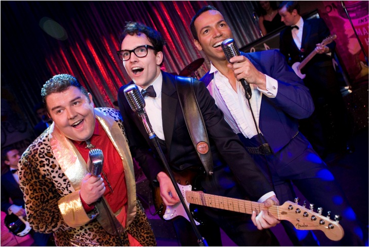 was killed in the crash. Gary Trainor as Hipockets Duncan the local DJ and friend of Holly, is also seen as a big shot New York music executive but Trainor really comes into his own as the MC at the Clear Lake concert where he shows a fine turn of comedy as we get some acts which take you right back to small town America of the 50s US Mid-West. Indeed the sets and costumes by Adrian Rees could have come straight from the pages of Norman Rockewell, from the radio ads for washing machines to the huge chrome mics and a world full of mic and guitar leads all over the stage at every recording and every concert. And it is concerts that end each half. The first