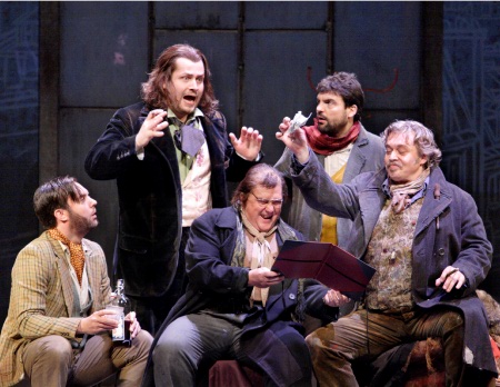 to anguish and sorrow at the impending death of Mimi. His duets with both Musetta and Mimi blend and balance beautifully, which is not always the case when otherwise fine voices combine. There is also good support from Nottinghamshire born bass David Soar as the philosopher Colline and Welsh Baritone Gary Griffiths as the flamboyant musician Schaunard while Leicestershire born Howard Kirk brought some light relief as the none-too bright landlord with a liking for the ladies. Soar managed one of those magical scenes when he