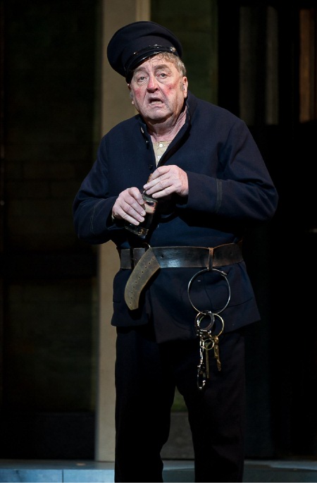 Nesbitt as the prison warder Frosch staggers in with his mop and bucket.