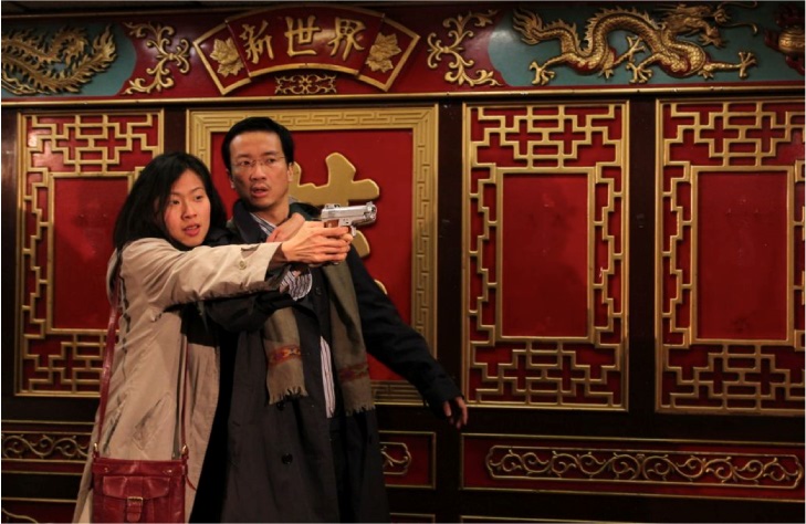 side of the curtained off performance area. It took all the skill of the actors to overcome this and whilst Dim Sum Nights can be said to be `site specific ‘I could have easily enjoyed this in the quieter back room of any pub. What makes their work unique is that integral to the company's adaptation of both established works and the development of new writing, is a sense of education in reflecting Asian culture within and with a western audience. Tina Chiang who is both touching and funny as the waitress in Butterfly Featuring six ndividual pieces, all set within a Chinese restaurant, we began with Butterfly. This was an introductory monologue written by Jeremy Tiang about a waitress played by Tina Chiang who also became our host for the evening. Next came Nui Ah by Thanh Le Dang. A once
