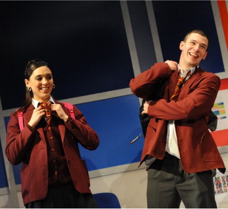 could go back in time, would we change things?' He highlights this point incredibly skilfully by playing with the time frame in the production. Opening after the event, the drama then takes us back, adding in the clues and red herrings like a cleverly layered detective novel, until we reach the point where the classroom tips over into violence. Rebecca Loudon as Chantay and Boris Mitkov as her boyfriend Reece, the school bully Presented by Birmingham Repertory Theatre at mac,
