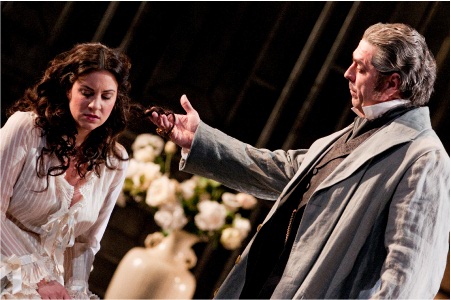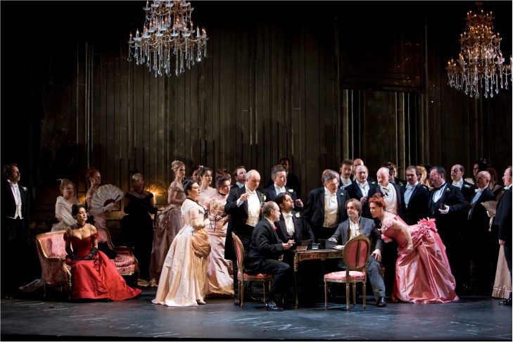 someone singing the words. Joyce El-Khoury as Violetta has a beautiful voice and the looks to charm any young Alfredo and even his respectable father Georgio (Jason Howard) Her duets with both the rich baritone of Jason