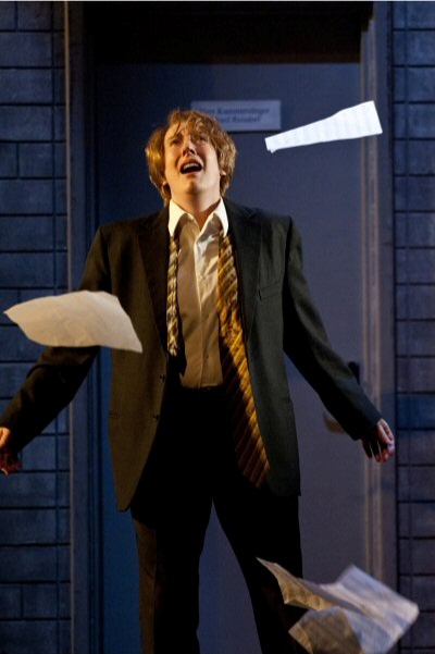 Chop Chop. The Prologue is set backstage when all this is explained and we have some wonderful characterisations of prima donnas, divas and divos. There is the Music Master, (Robert Poulton) who looks a little like Albert Einstein with a baton worried about how his stars will react and then there is his star pupil . . . This is the distraught composer whose life is