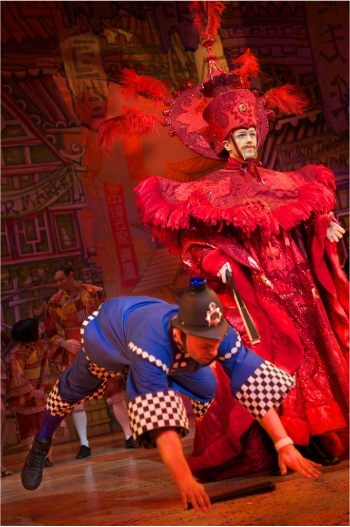 drag as the Emperor invites the Widow Twankey to dance with him.