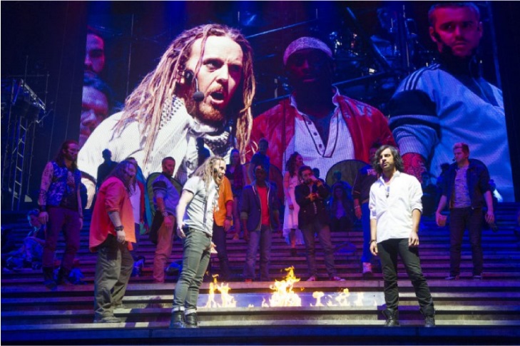 Tim Minchin as Judas and Ben Forster as Jesus clash among the flames in front of the huge video screen Jesus Christ Superstar - The Arena Tour National Indoor Arena, Birmingham ***** ANDREW Lloyd Webber and Tim Rice's rock opera Jesus Christ Superstar has stood the test of time since it's Broadway opening in 1971. The reason, put simply, is because it is very good. In the right hands, it's compelling. On a damp night in the middle of Birmingham, as part of its short second leg of a UK arena tour, it proved an absolute revelation. I confess to an initial degree of scepticism at the idea of staging a musical in a vast arena, more suited to rock bands and sporting events. Wouldn't subtle nuances be lost? Would the sound balance work? Would lyrics be distinguishable? Would facial expressions be unseen? I need not have worried. Every element of this extraordinary ‘experience' was both creatively and technically outstanding , losing none of the intimacy and power it needs to achieve. This is, after all, ‘the greatest story ever told' The show pulsates from every nook and cranny. There are no simply no lulls, no drops in energy and no errors. It's one of those rare times when everything gels perfectly together and leaves you spellbound and even somewhat shell shocked. Clearly, in a venue this size, some help is needed for those at the back to see faces and smaller exchanges. Camera operators cover all the bases, giving crystal clear, filmic images on a huge backdrop screen. Shots not only mirrored