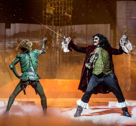 work hard throughout performing vocally from the ground and in the air. Adding a little Operatic class to the pop standards is the dastardly Captain Hook delivered by Flemish actor Wim Van Den Driessche whose version of Nessun Dorma got the crowd going in the early part of the show. Pan battling Captain Hook, played by Flemish operatic baritone Wim Van Den Driessche One of the key highlights is X Factor runner up and Celebrity Jungle Survivor, Stacey Solomon as the reincarnated Tinkerbelle. She performs a superb version of You Raise Me Up floating 20 feet above the main stage and all against twinkling starlight setting that fills the entire set and stage. Another wow factor is the stunts and acrobatics with physical action and tumbling performed at break neck speed. Peter Pan, The never ending story, is on such a huge visual scale that practically you do not know what part of the stage to look at as there is so much happening at once but the sum of the entire production is simply world class. If you have a head for heights it will certainly get you flying, young or old, nicely into a season of magical Christmas spirit. To 15-12-13. Jeff Grant |
