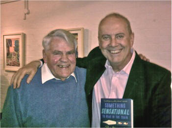 From the beginning, he commanded the stage, exuding a sort of unfailing but surprised happiness and striding forcefully from one side to the other, punching the space before him as he went. Aging groupie John Slim (left) with Gyles Brandreth Early